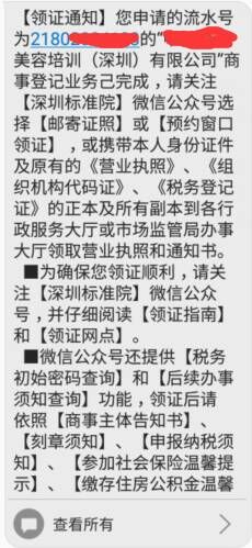 第五步:领取深圳公司注册的营业执照正副本,深圳市场监督管理局审核通过后便会以短信通知您,您的深圳公司注册手续已完结,并可在市场监督管理局窗口申领深圳公司注册好的营业执照以及同时会发一个深圳公司的刻章编码,如下图: